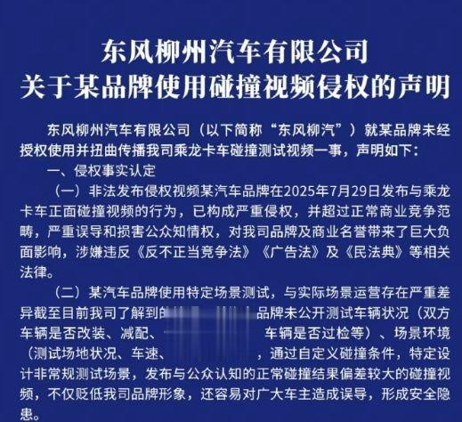 然而,这波“视觉系”营销却意外撞上了“硬骨头”。视频中的重卡乘龙在会后公开发文,质疑某品牌用不实测试误导消费者,称其行为“涉嫌违法”,并表示将追责到底。